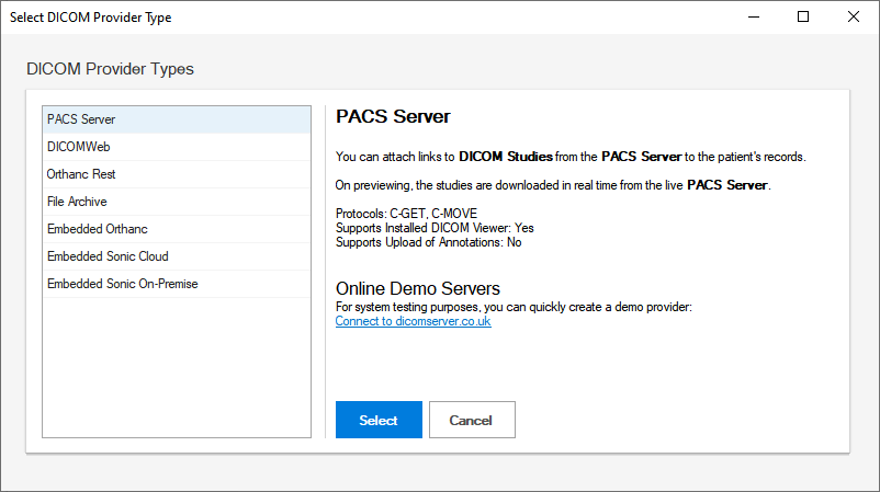 3. Next, in the opened DICOM Provider Editor, fill out the details for your DICOM server and press Save and Close.
