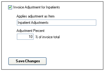 Using this feature you can apply adjustments to in-patient invoices, by billing less or more. You can specify the percent of the total invoice that will be additionally charged.