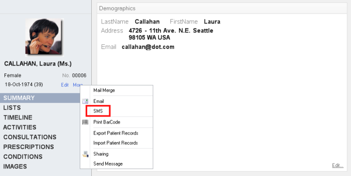 1. Go to Records->Patients, right click on a patient and select the SMS command