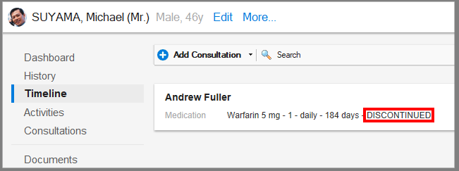 The prescription will appear as discontinued in the interface: