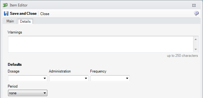 2. Set your default values in Dosage, Administration, Frequency and Period fields