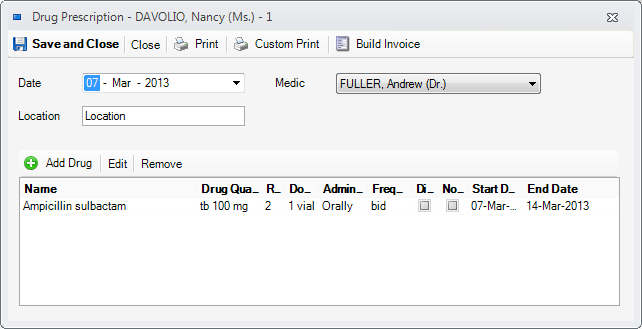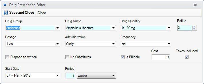 - Drug Name - the name of the drug. You can use an existing one or enter a new one.