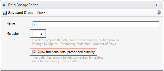 - when checked, the prescription that uses this dosage will allow fractional values. Typically the case of syrups or bottles