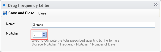 The frequency multiplier is the number times per day, that the drugs should be administered. It can be defined from Drug Frequencies