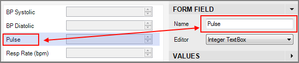 3. Values - this is useful for predefining the values in drop-downs as bellow: