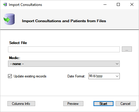 RecordsConsultations Import Consultations You can import Consultations with Diagnosis and description from csv files To import go to Records->Activities->Consultations->Settings->Import