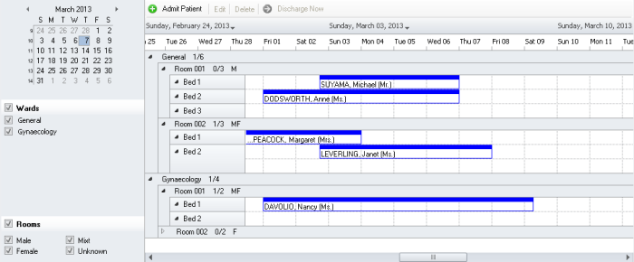 Use the left sidebar to filter the rooms and beds to be displayed. You can filter by date, ward and room type