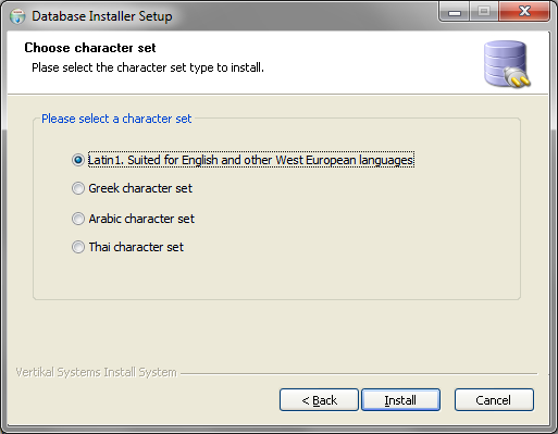 Then click Install. If your records or names will be in Greek, Arabic or Thai, choose the appropriate character set