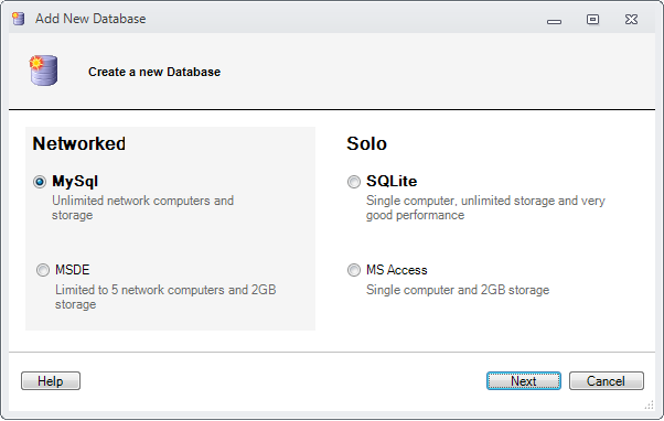 Click Tools -> Add New Database and virtually click Next on each step, except when selecting the Database Type. There you should select MySQL.