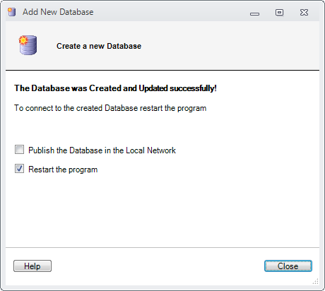The program will restart, connected to the newly created database that is accessible through the local network.