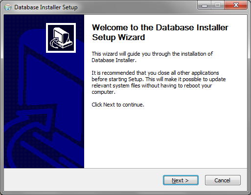 After the download ends, the installation of Database Installer will begin. Click Next.