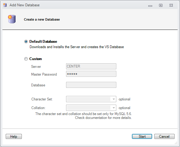 | If you already have MySQL server installed, choose the Custom option. Using the Default Database in this case may lead to loss of data in your existing MySQL |