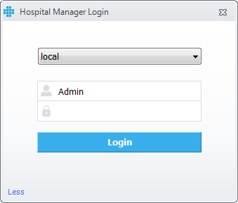 The login window allows authenticates users to connect to a Patient Manager \ Hospital Manager database.
