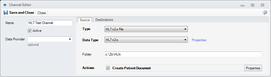 For example when Create Patient Document in checked, when a message is received it will trigger the creation of a new Patient Document and also the creation of a patient if the one from source is not identified in the database
