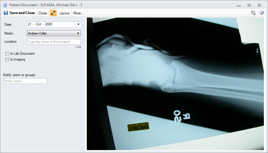 To send a Patient Document to a channel destination, simply press the         button on the tool bar: