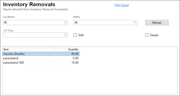 This allows the nurses to view or print\export the Nurse Items whcih were removed using Nurses Inventory Removals