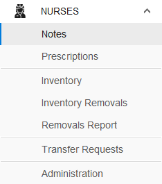 Nurses Nurses Notes Nurses Prescriptions Nurses Inventory Nurses Inventory Removals Nurses Inventory Removal Report Nurses Transfer Requests Nurses Administration Nurses Module Permissions Nurse Items This feature is available only in the versions of the program that have enabled the hospital modules