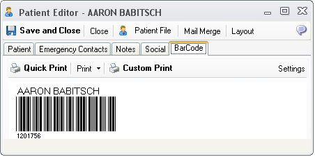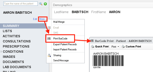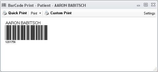 You can print the Patient barcodes from the Patient Editor->BarCode tab as bellow: