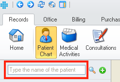 Position the cursor in the program in patient selection boxes like the ones in the images bellow, and then scan with your barcode scanner. Once the code is scanned, the program will jump to the scanned Patient.