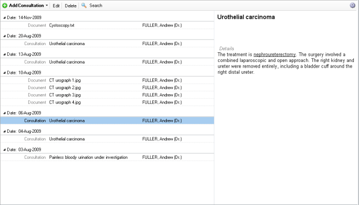 Press the Add Consultation button or drop down to add new medical records