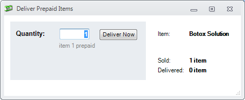 To deliver a prepaid item (or dispense a prepaid drug) , double click on the prepaid line. The following window opens: