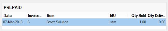 Prepaid items are invoiced items that were not delivered (the Delivered Qty in the invoice is 0 or lower than the invoiced one). You can set the Delivered Qty to from in the Billable Items before pressing the Build Invoice button, or in the Invoice Editor, by editing the line