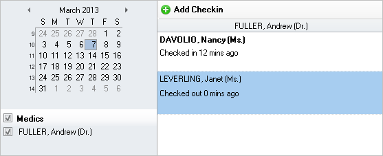 Checkins can be added in this viewer or from patient appointments in the Calendars