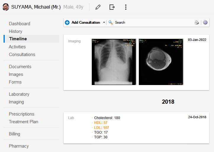 The Patient Timeline will display clickable thumbnails of the DICOM studies