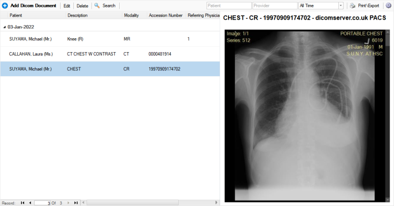 For more in depth analysis of the study, you can open it in the Dicom viewer of your choice by pressing ![]()