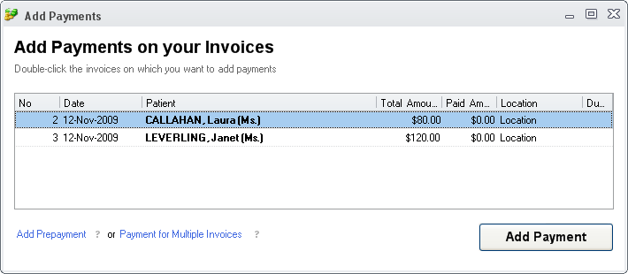 When needed, you can reconcile more invoices with a single payment. For this press the Payment for Multiple Invoices link.