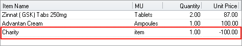 You can enter charities by adding of negative prices in Patient Invoices as below: