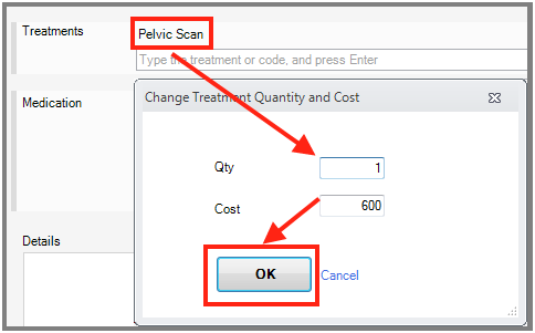 In Consultation Editor, simply click an entered treatment and change Quantity and Cost as bellow: