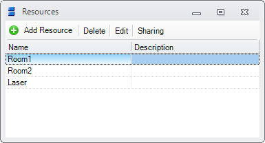 This viewer's purpose is to easily manage the schedules of the resources. Typically you can register as resources objects, devices or rooms which are used by multiple users and they need scheduling. Resources can also be employees. Note that for employees you can create a user and a calendar in the system, and their schedules can be recorded in the Calendars