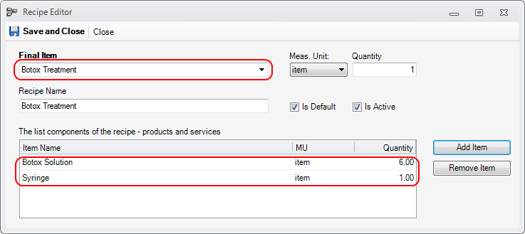 The recipe is a template of what components will be consume when doing a Botox Treatment. It will contain the ideal or default consumption. During the application of the treatment, this consumption can be adjusted if necessary to the real values.