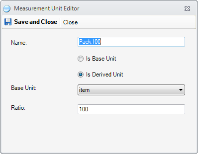This Pack100 measurement unit, means that 1 Pack100 contains 100 (ration) of the measurement unit item