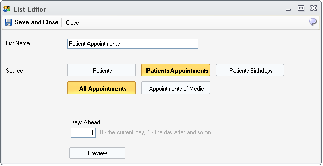 Next, to build a list of patients with all appointments for the next day, enter 1 in the Days Ahead field